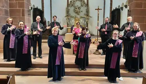 An diesem Sonntag wird Lukas 14 – INTEGRATION UND KULTUR FÜR MENSCHEN MIT BEHINDERUNGEN e.V., Frankfurt, den Gottesdienst mit dem Gebärdenchor mitgestalten und die gemeinsamen Lieder mit Gebärdensprache unterstreichen.